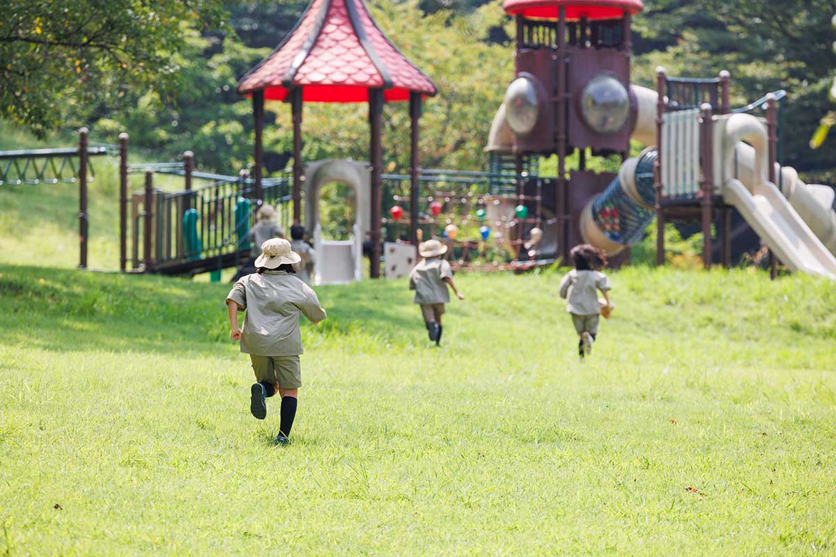 全長60mのロングと約40mショートの2コース。遊具やフィールドアスレチックも完備され、体を思いっきり動かせます。