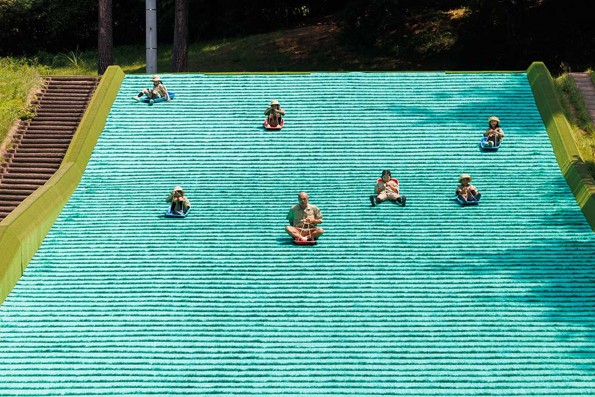 スリル満点人工芝滑り台