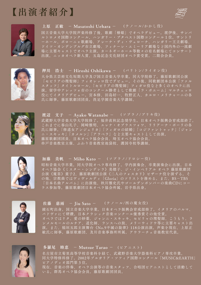 「声の魔法で旅する音楽の時間」オペラガラコンサート・体験型オペレッタ