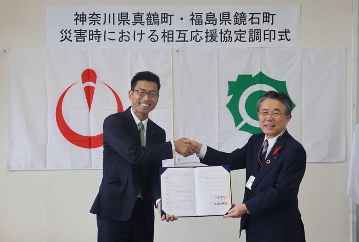 神奈川県真鶴町(小林伸行町長(鏡石町出身))及び鏡石町では、令和7年10月3日(金)に大規模な災害が発生した場合において、被災した町のみでは十分な応急措置ができない場合に相互応援協力を行うことについて、協定を締結しました。