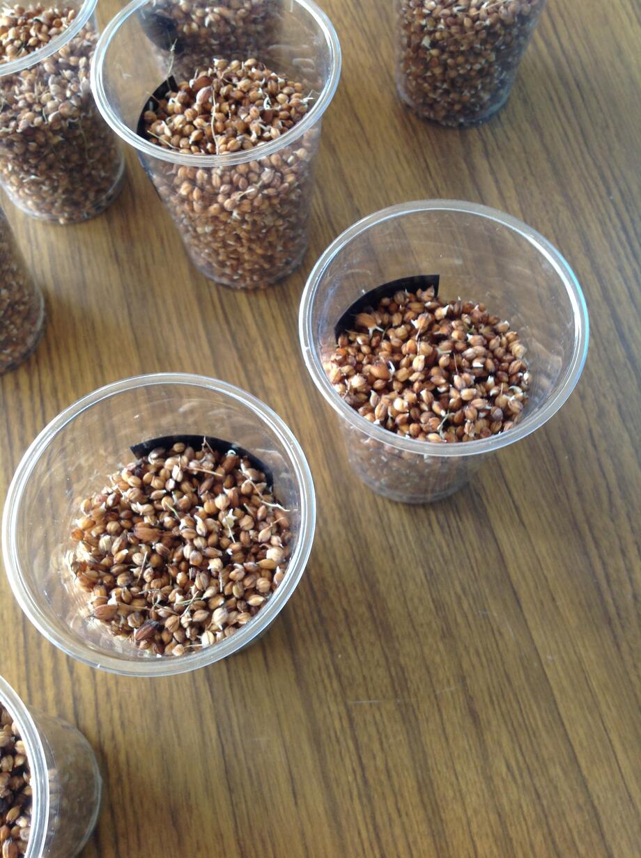 こちらが種。正確に計量された後、色別にカップに分けられています。