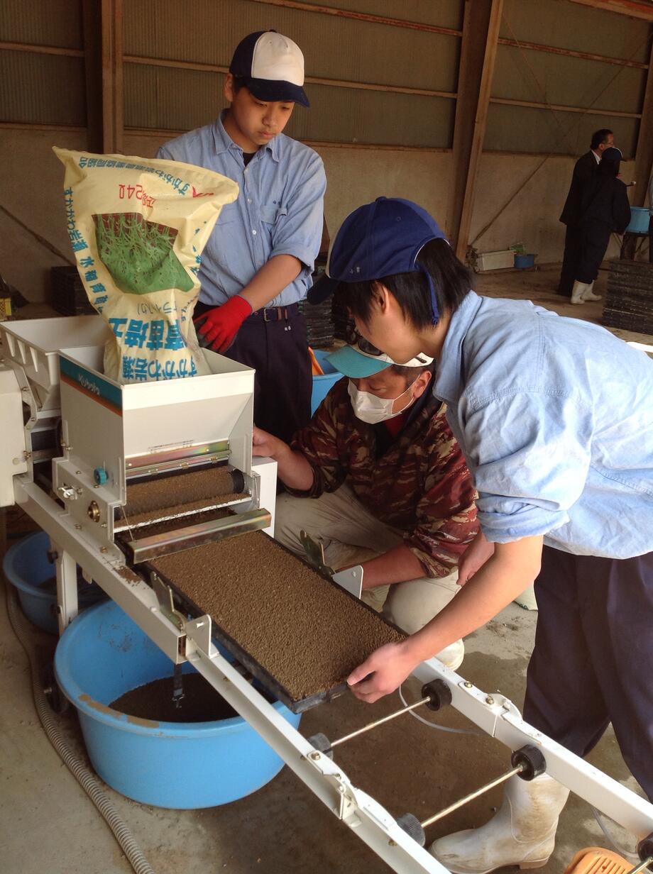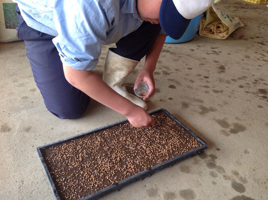 こちらは作業風景。みなさん真剣な表情で種まきを行っていました。