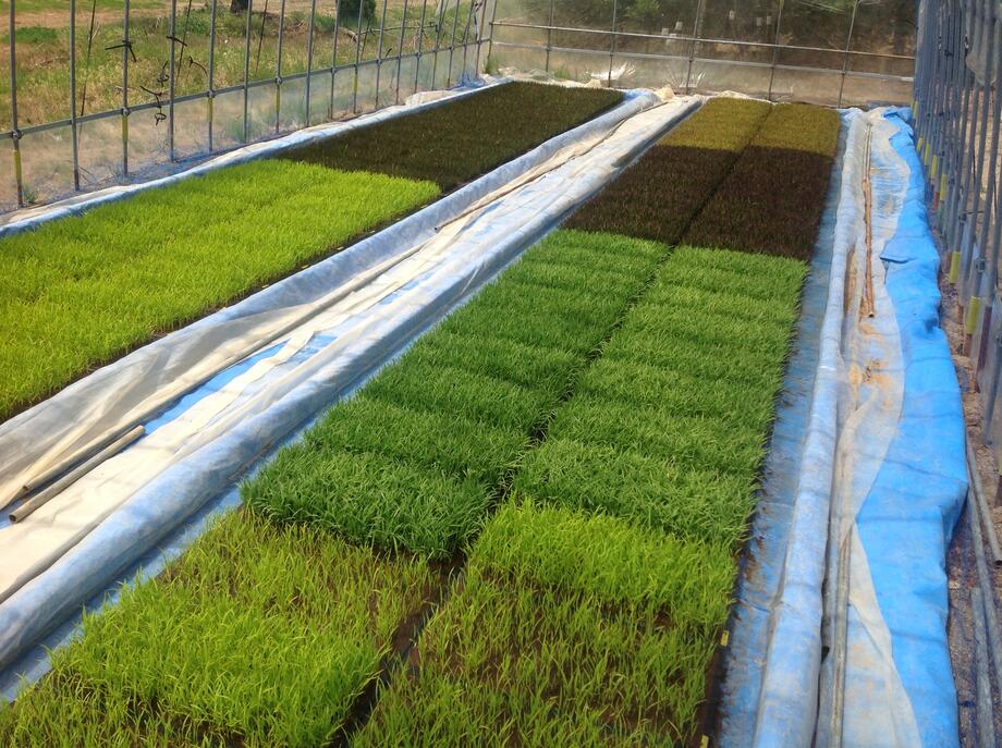 使用する6色の苗のうち、ハウスでは5色の苗が育てられました。