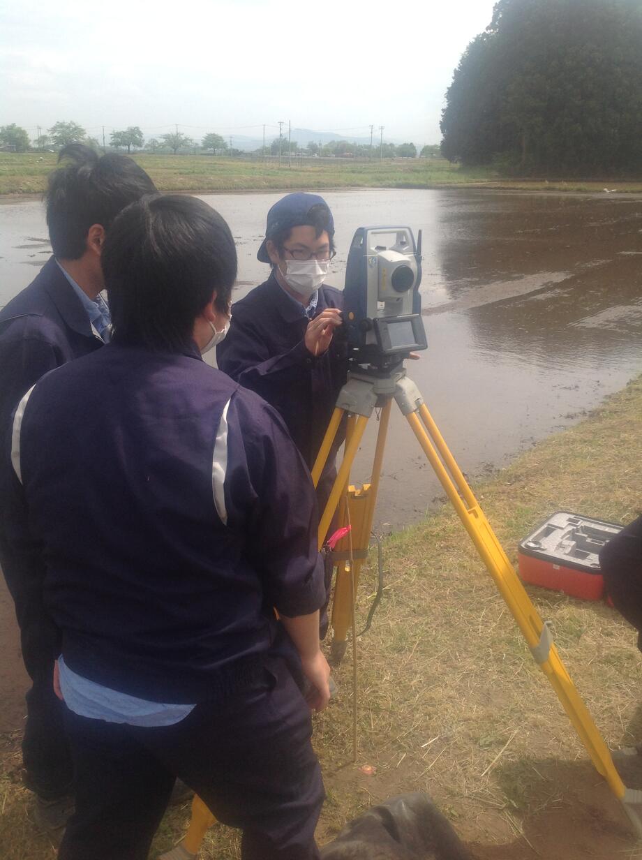 測量は岩瀬農業高校の実習も兼ねて実施。まずは機器のセッティングです。