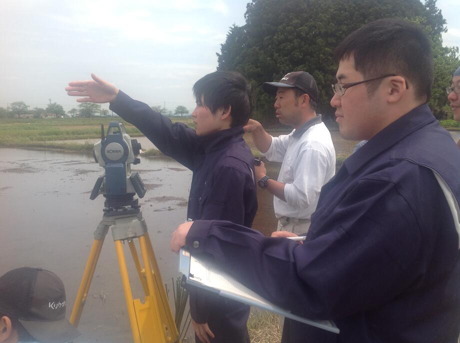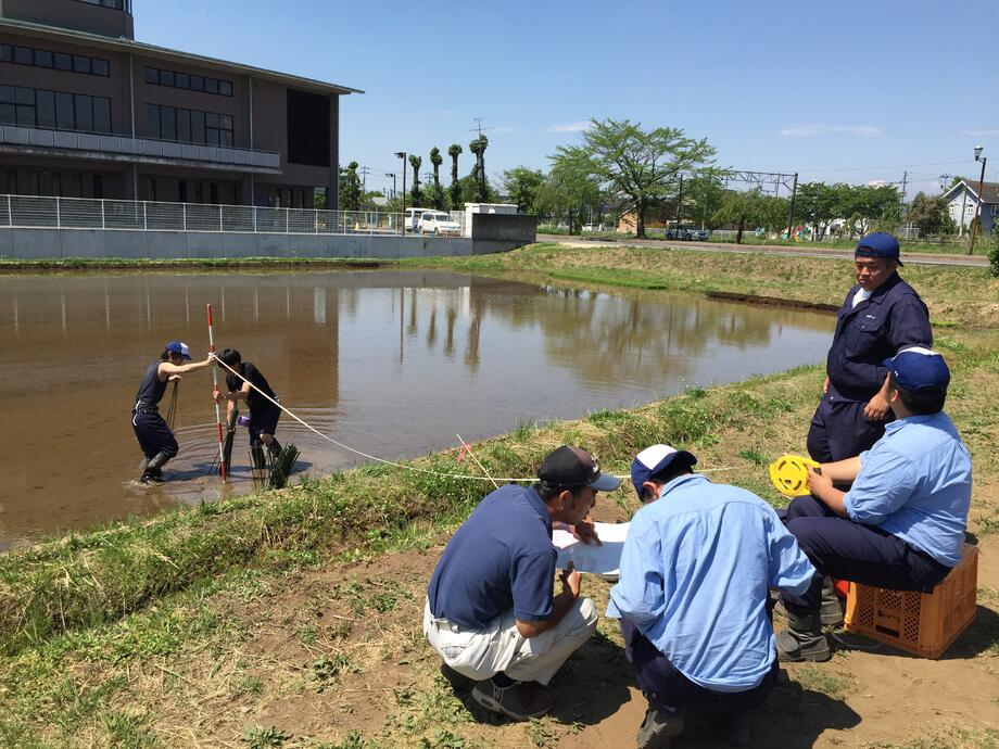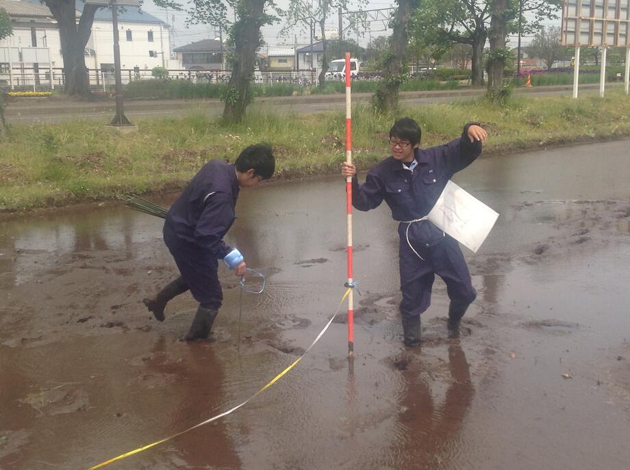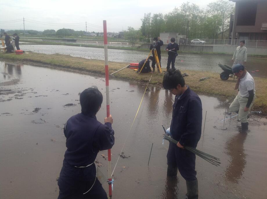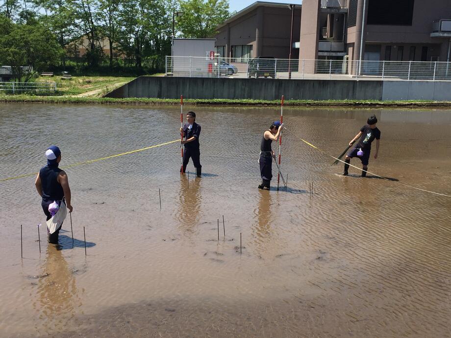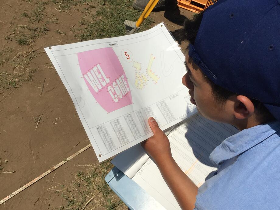 5月12日、苗を植える際のポイントを決める測量作業がスタートしました!