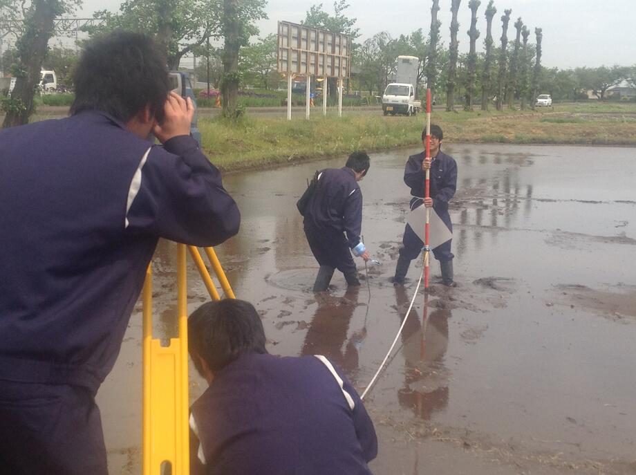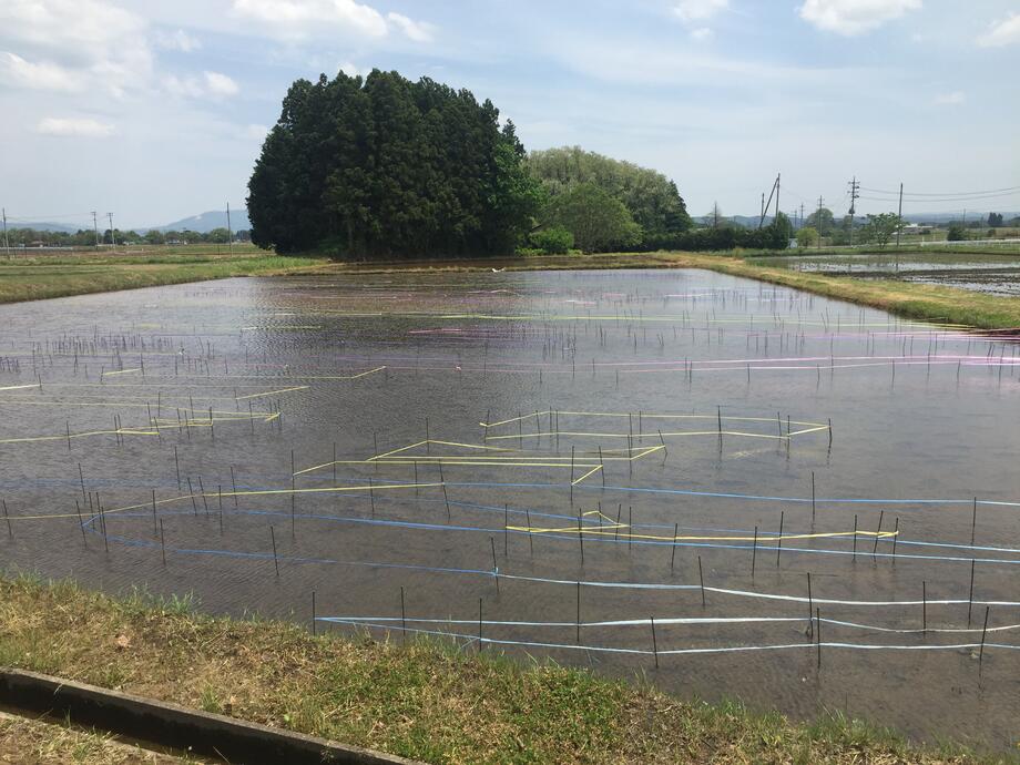 5月18日、上の田んぼ(絵柄部分)の測量作業が終了しました。
