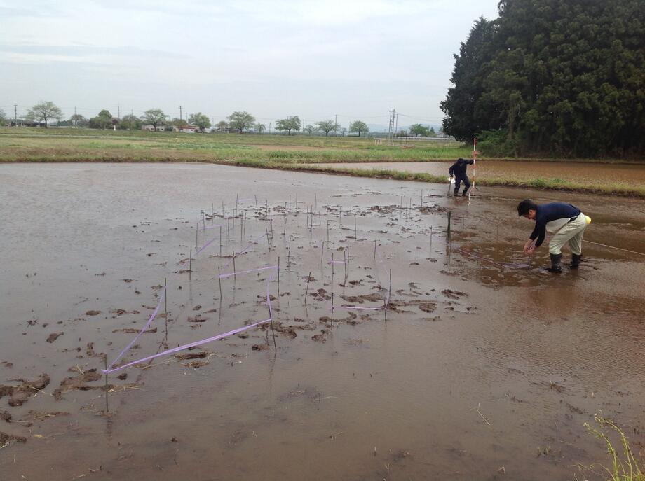 これからこの広ーい田んぼにポイントを打っていきます。その数約1500本!