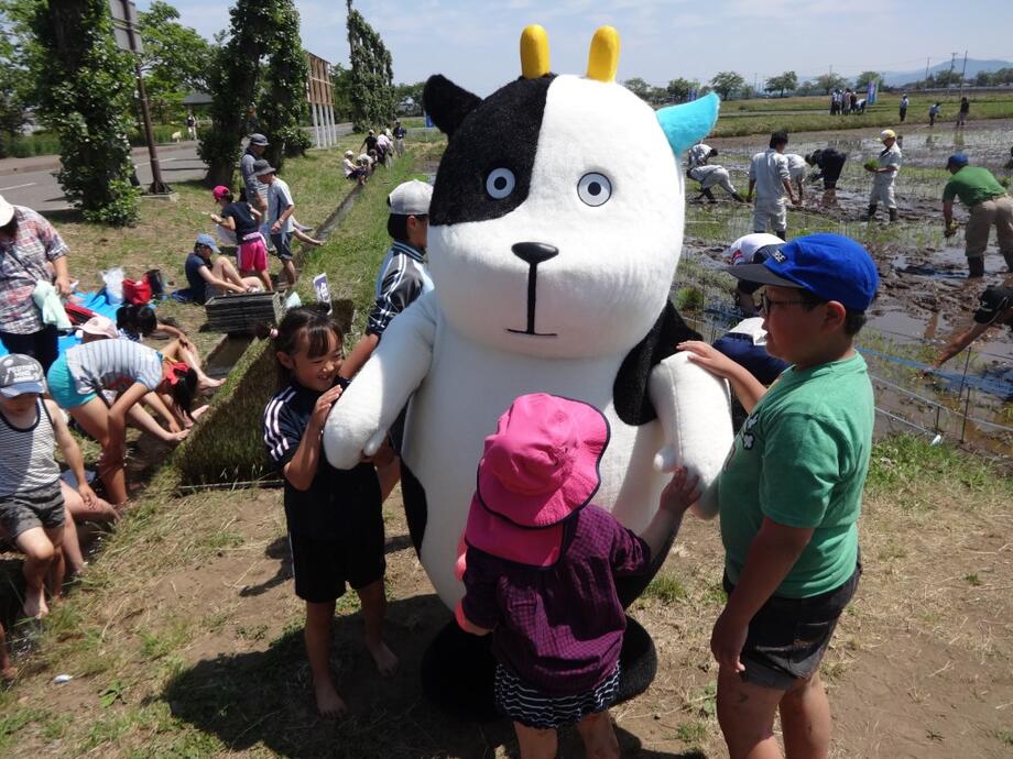 町の公式キャラクター「牧場のあーさー♪」はここでも大人気でした!