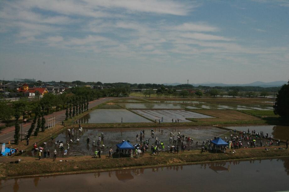 同日、図書館4階の観覧場所から1枚。5月24日の田植え祭りに向け、準備万端です!